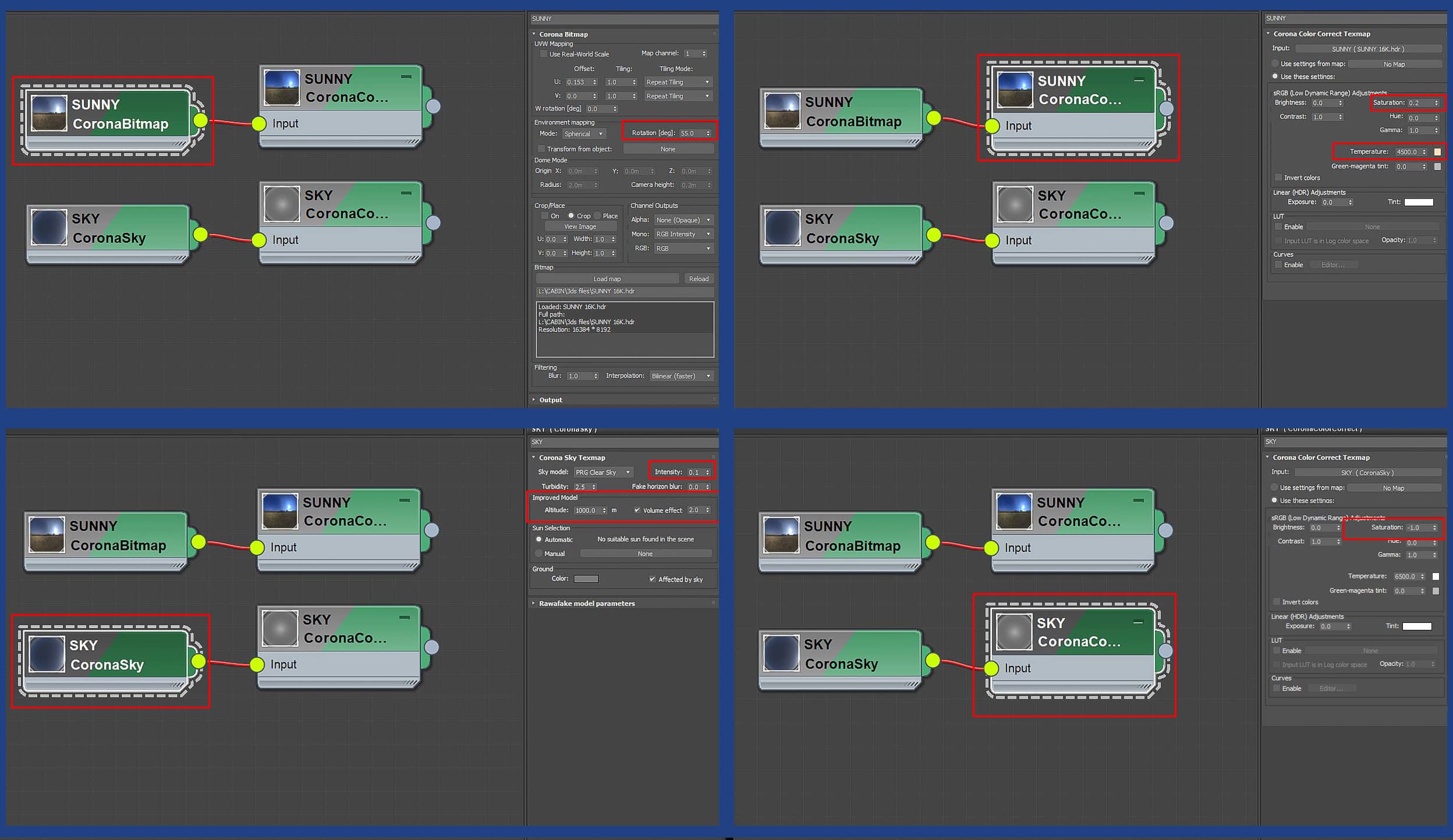 Lighting was a bit time-consuming because there are 18 lighting sources in the scene. I had also to tweak them a bit between the several shots of this project. Most of them are made to get the desired reflection on the car, while some other are with hdr linear and radial gradient. The rest of the lights are used for the environment around the car and a few directional lights to get a glow behind the car + taillights. You can find some great tutorials on AutomotiveCGI Youtube Channel.